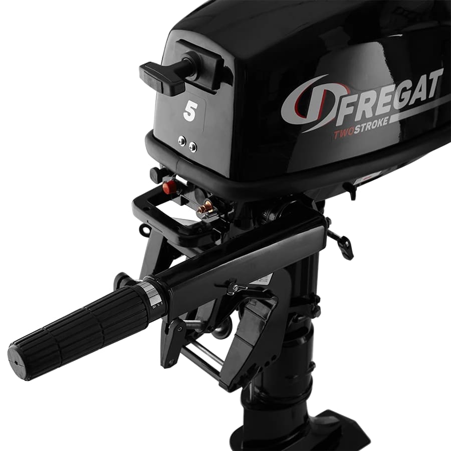 2х-тактный лодочный мотор ФРЕГАТ 5FHS управляется румпелем (рычагом). Направление хода меняется с помощью тройной стандартной коробки передач F-N-R (вперед-нейтраль-назад).