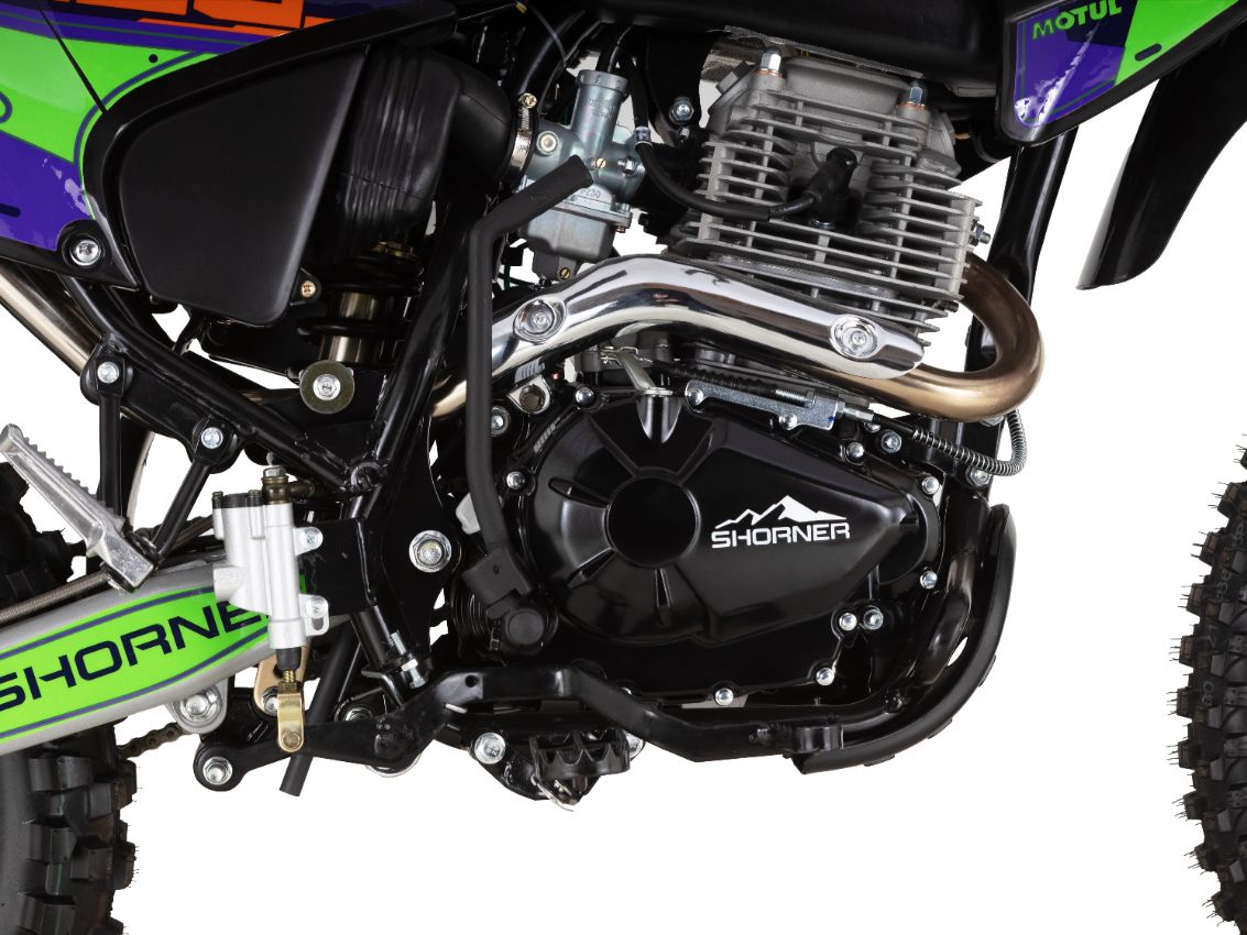 Shorner 280 R — это не просто мотоцикл, а настоящий боец, созданный для тех, кто не боится бросить вызов сложным маршрутам и экстремальным условиям гонки. Этот эндуро-мотоцикл сочетает в себе мощь, манёвренность и отличную управляемость, что делает его идеальным выбором для любителей приключений и адреналина!