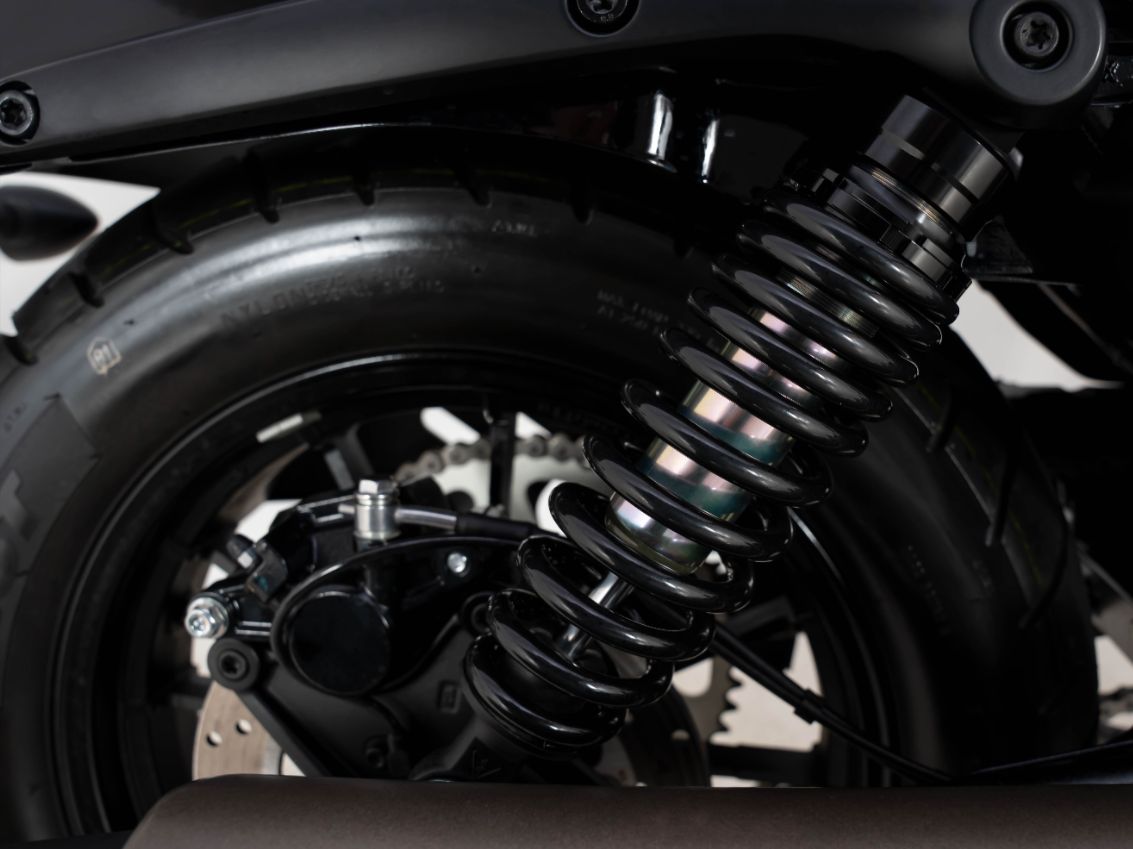 Два задних 36-миллиметровых амортизатора имеют регулировку предварительного натяга пружины. Помимо придания ретро-образа, они также помогают поддерживать высокий уровень комфорта.
